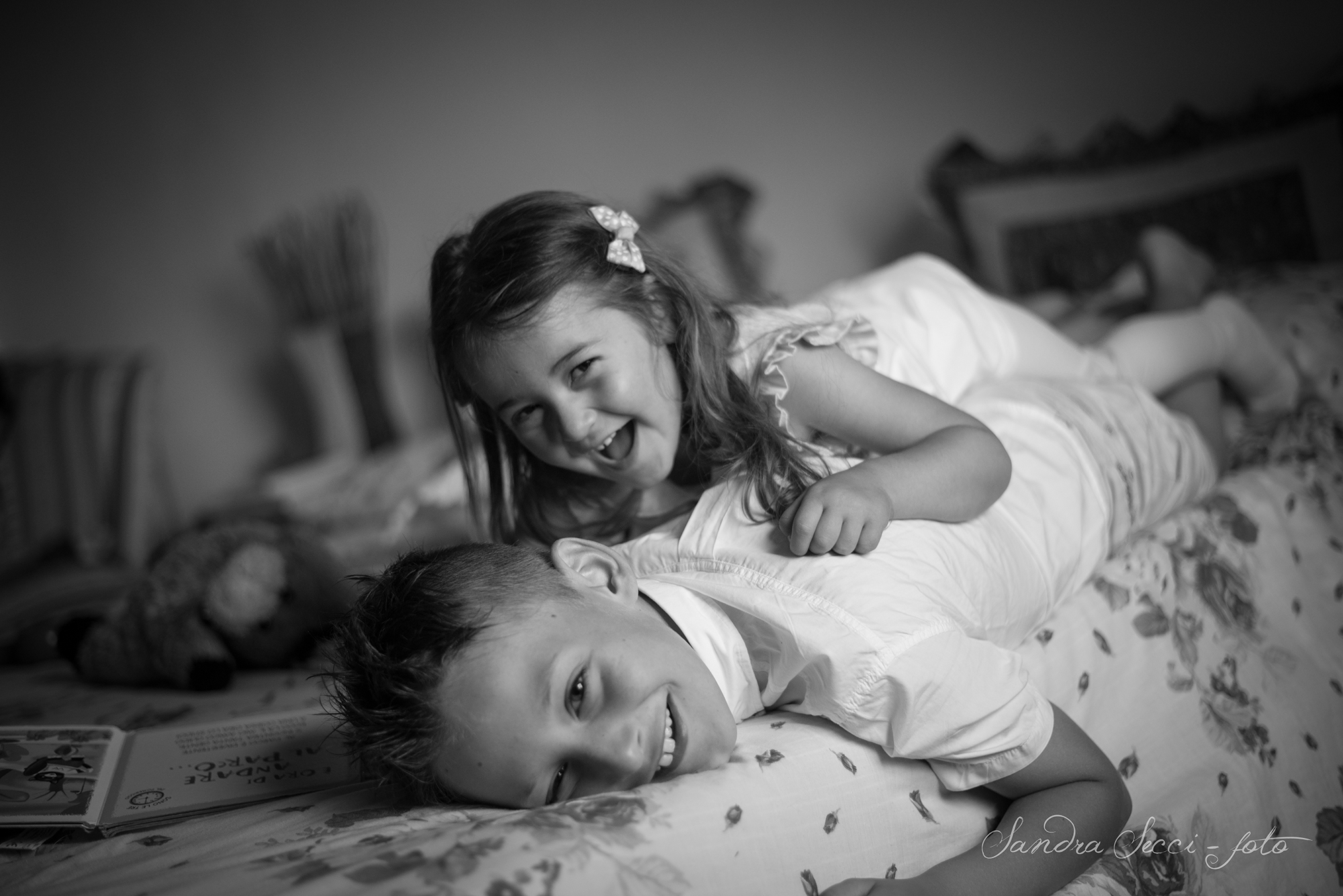 Il segreto per delle foto uniche sta nel farli giocare e divertire durante il servizio. Alle volte sono un po intimoriti dallo studio, ritrovarsi con persone che non conoscono, in un luogo che non conoscono, può farli sentire un po a disagio; prediligo svolgere i servizi fotografici per bambini direttamente a casa vostra, nel loro nido familiare, un posto sicuro dove sentirsi a proprio agio, dove possono farmi vedere i loro giochi, e raccontarmi di loro con spontaneità e mentre si divertono, io possono svolgere a pieno il mio lavoro, per ottenere il massimo nelle foto.